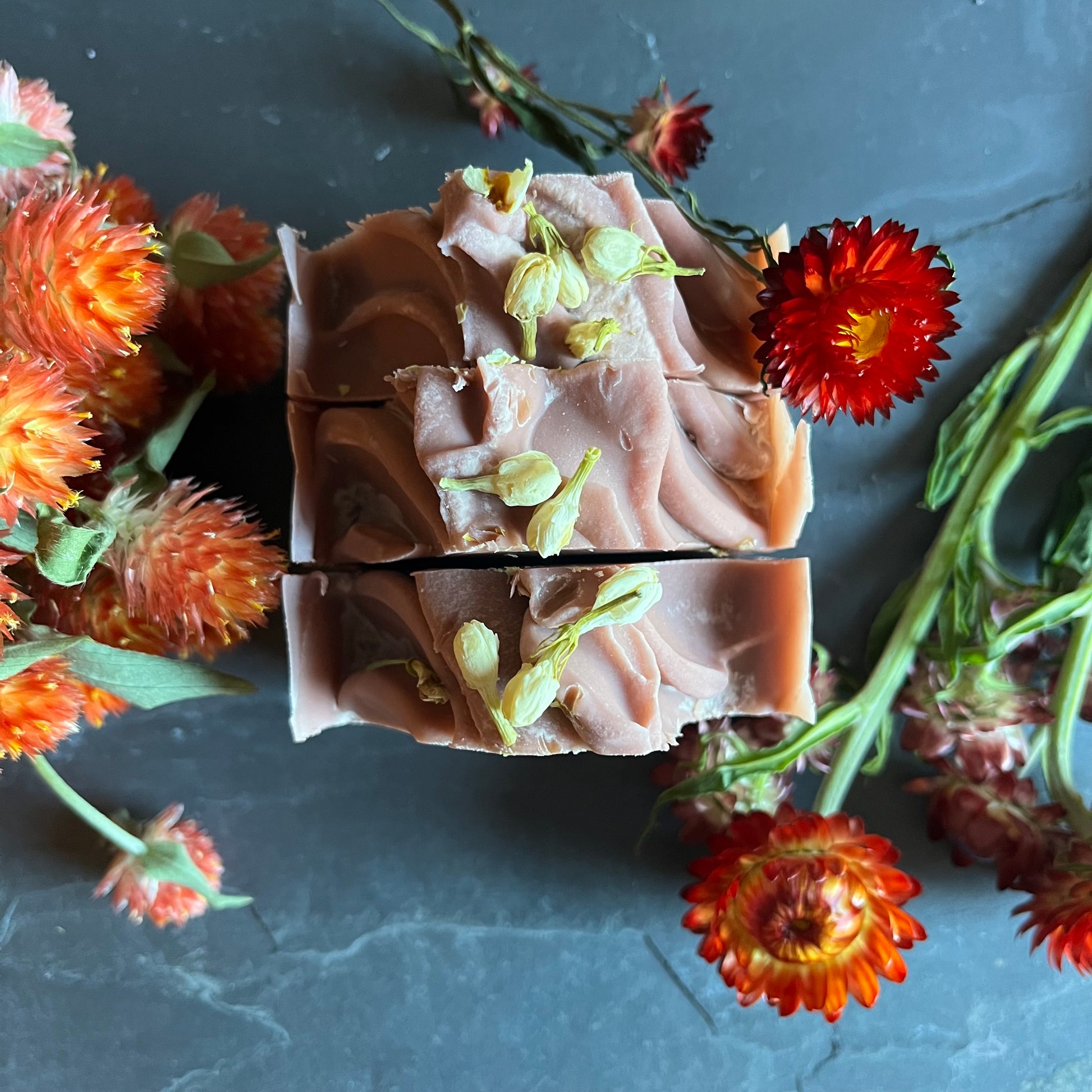 Desert Bloom is grounded in the beauty of the desert—where wild herbs meet sun-warmed stone and ancient clay. Scented with a calming blend of lavender, fir needle, juniper berry, and a hint of patchouli, this bar carries the dry, steady air of open landscapes. Moroccan red clay and kaolin create a soft, mineral-rich lather, leaving skin gently cleansed and deeply rooted.